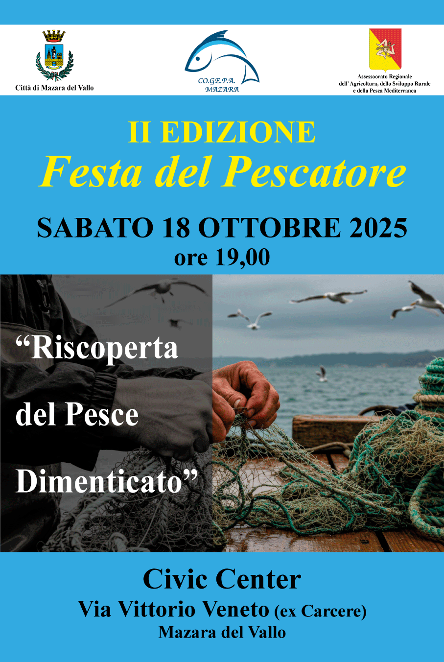 La Festa del Pescatore si concluderà il 18 ottobre al Civic Center con un evento di degustazione gratuita del "pesce dimenticato" con sottofondo musicale.
